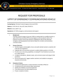 Christian County Emergency Services (CCES) is seeking bids from qualified vendors to upfit a 2026 Chevrolet Tahoe PPV as an emergency communications vehicle. The selected contractor will be responsible for equipping the vehicle with advanced emergency warning equipment and transforming it into a mobile communications command center.
