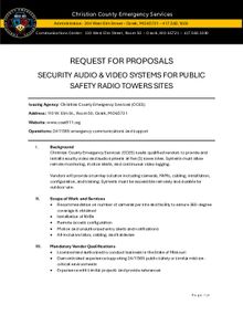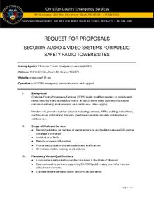 Christian County Emergency Services (CCES) seeks qualified vendors to provide and install security video and audio systems at five (5) tower sites. Systems must allow remote monitoring, motion alerts, and continuous video logging.